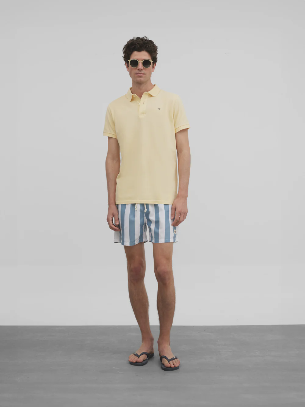 La firma de moda y aventura Blue Banana sigue la apuesta de la firma por la aventura y la sostenibilidad, ya que todos sus diseños están realizados con poliéster reciclado y son negativos en carbono, es decir, compensa el doble de las emisiones de CO2 que generan. Lo hace financiando proyectos de energía renovable avalados por las Naciones Unidas. En la línea masculina, la firma destaca con una selección de modelos de corte clásico y tejidos lisos o estampados que conviven con otros diseñados para la práctica de surf. Todos tiene cierre ajustable con cordón y bolsillos delanteros y traseros con solapa para el cierre. Para los pequeños, Blue Banana ha diseñado tres mini modelos de bañadores de corte recto. (Desde 49,90€)